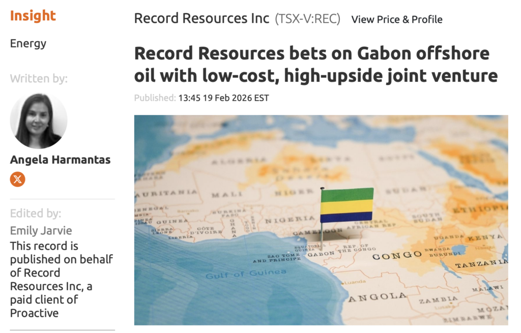 New Proactive Investors Feature Article__Record Resources Inc. – Feb. 19, 2026 — by Angela Harmantas (click image to view )